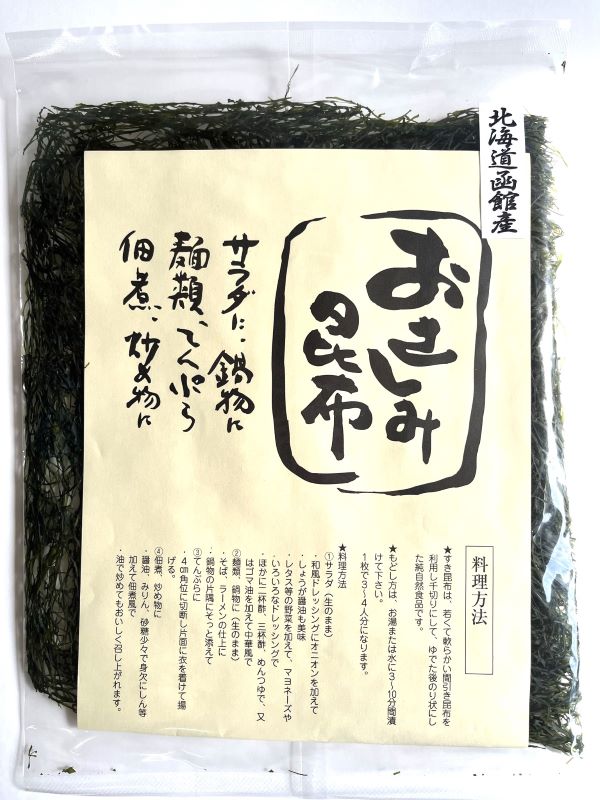 すき昆布は、若くて柔らかい間引き昆布を利用し千切りにして、ゆでた後のり状にして純自然食品です。